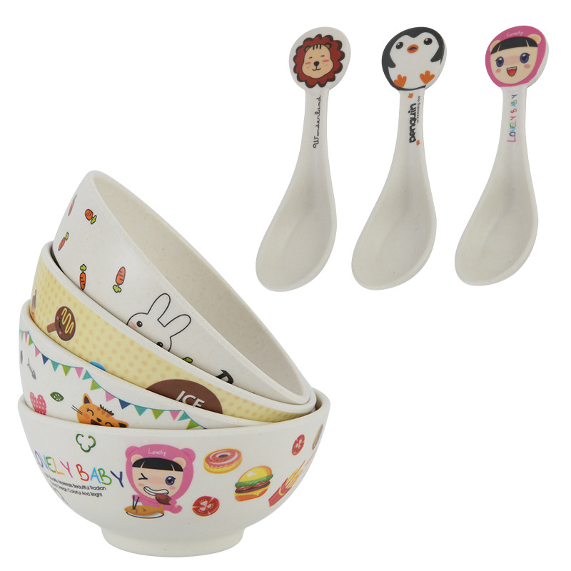 wholesale retail kids dinner lunch bamboo fiber plate tableware suit kindergartenmaterialbamboo fibercapacity500mlcoloras picture/customizedlogocustomizedprintingcustomizedusagehome/school/restaurant/party/storagemoq500pcssample7-10days